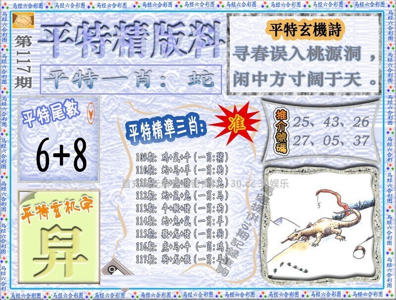 | 117期:必中六尾【234689】开:虎04准 |